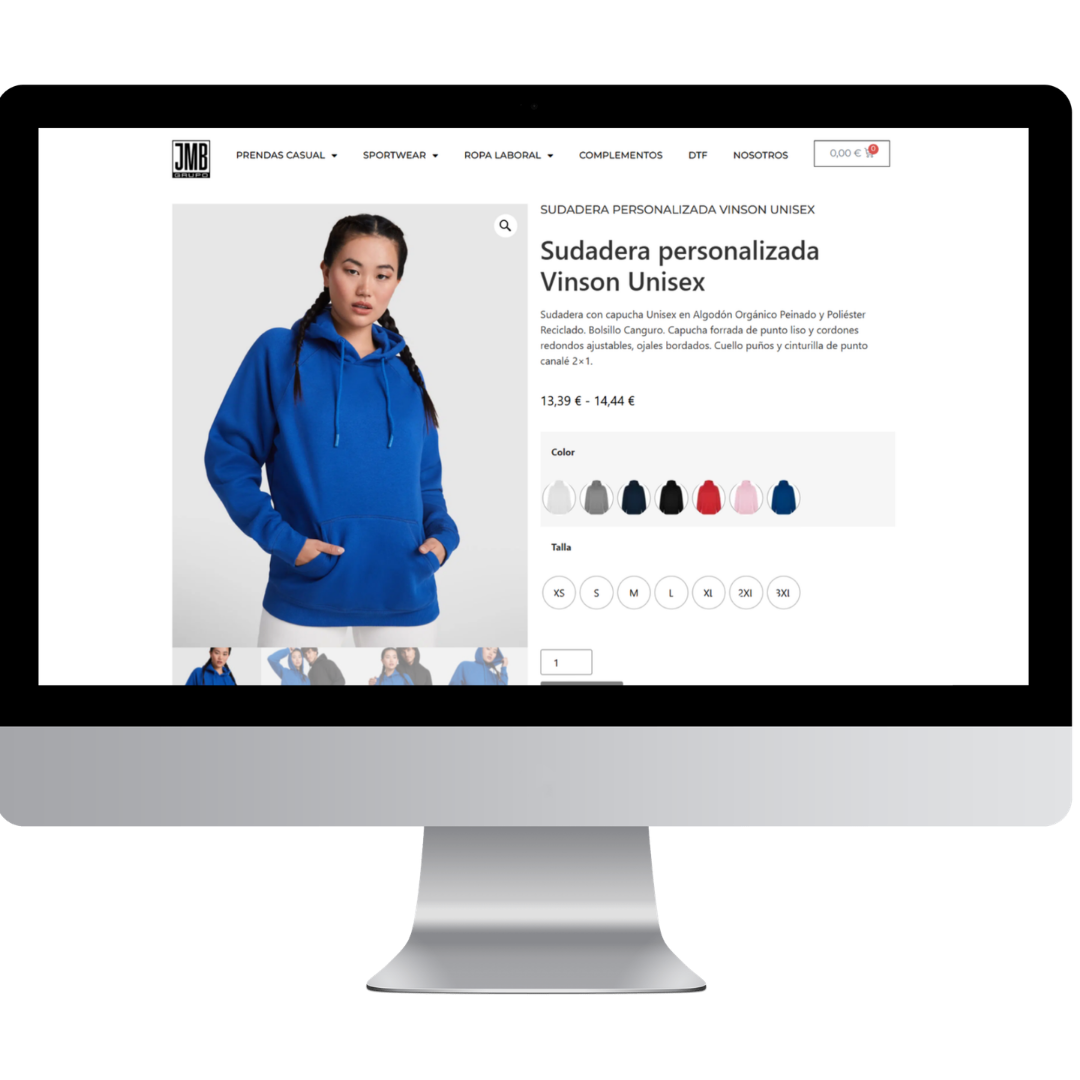 Tienda online con un sistema de personalización que permite seleccionar tallas, medidas y acabados específicos.